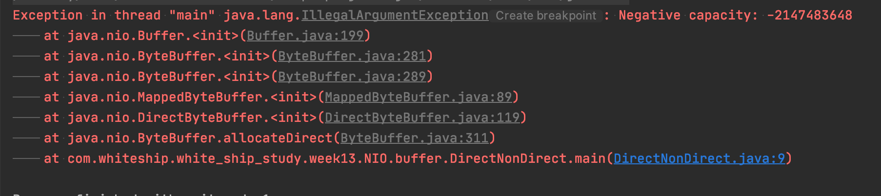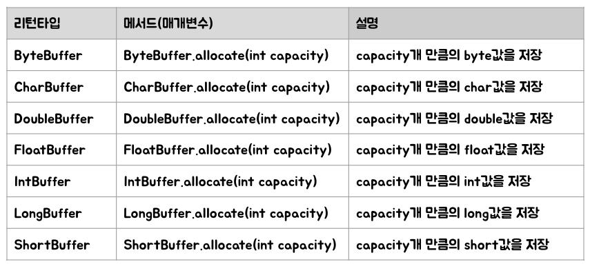 - BufferUnderflowException : position 이 limit 과 같을 때 get() 으로 데이터를 읽으려 할 때 발생
